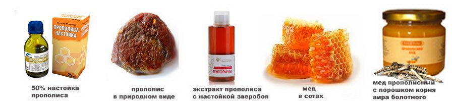 - экстракт прополиса с настойкой зверобоя;