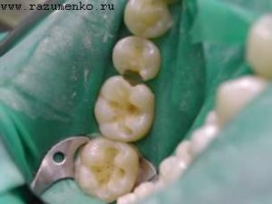 Следующие фотографии демонстрируют методику самой реставрации. Для чего Вы спросите? Для того чтобы у Вас наш уважаемый читатель снять сомнения в прочности и функциональности будующей реставрации. Ведь бытует мнение среди пациентов да и среди некоторых врачей что мол выпадут все эти пломбы через год- два.