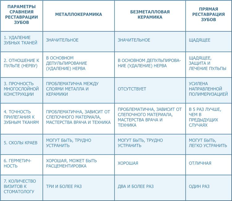 Сравнение основных видов раставраций зубов